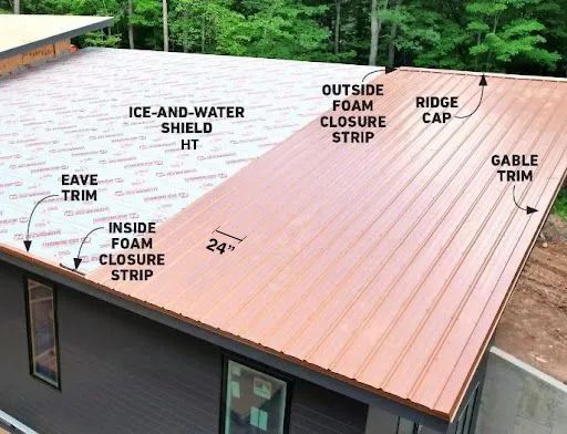 R-Panel or exposed fastener metal systems can be multi-use on walls and roofs. R-panel is available in a variety of options and comes in precut sheets that can be installed straight to deck or on supports. Impact rated class 4, fire rated, ease of installation, lighter weight gauge, and lower cost makes this a popular option for almost any type of project. There is some maintenance that is required every five to seven years of an inspection of fasteners to ensure water tightness and screws not backing out.