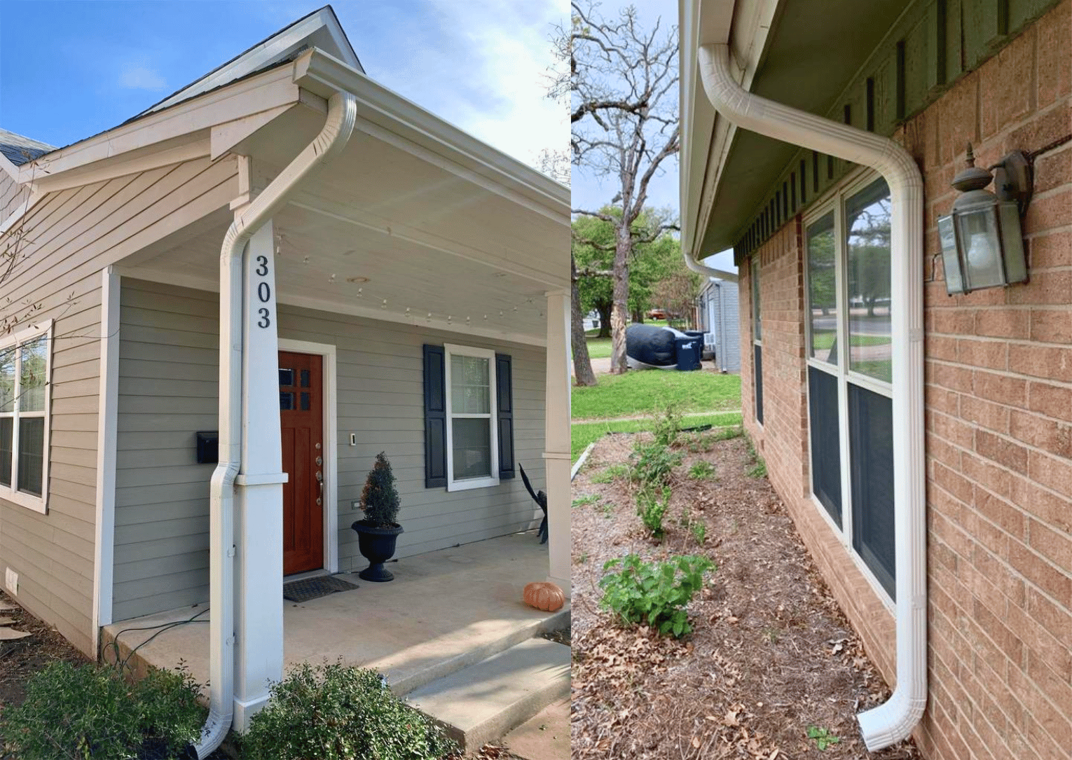 Having a completed roof system with gutters to help divert water away from your home is one of our goals at Aggieland Roofing. Finding the right system of gutters, either 5” or 6”, the correct number of downspouts, and the right gutter guards are the best keys to success. We also have an in-house metal team that can fabricate custom systems for specialty areas. Completing simple additions like adding a rain barrel system have become very popular and we love helping conserve water.