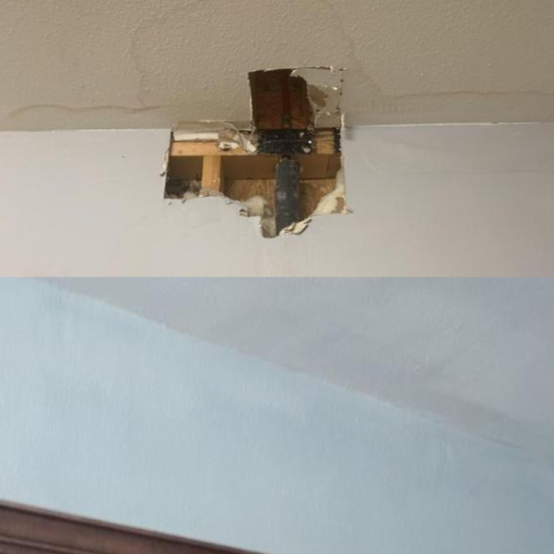 Roof leaks typically cause interior damage inside the home. Once our roofing experts have repaired or replaced the entire roof and after a good rain has ensured all the areas have been properly addressed then our interior team can fix, patch, paint, texture, and replace any type of interior damage you may have.